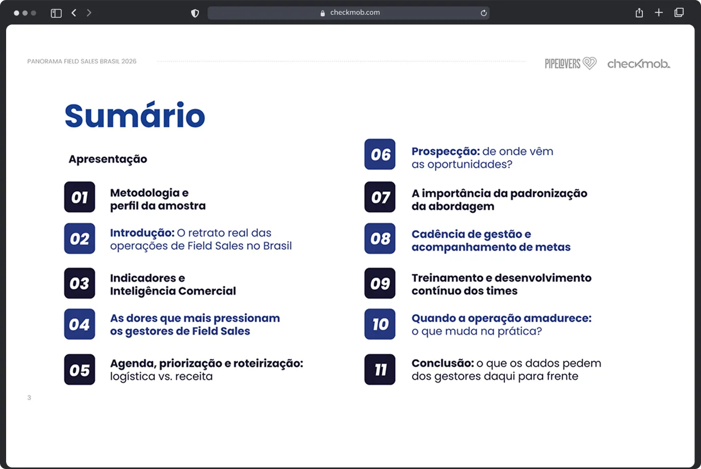 Use como base e ponto de partida para revisar rituais de gestão, repensar priorização de clientes, fortalecer o uso de indicadores e transformar a execução em campo em uma alavanca real de crescimento.
